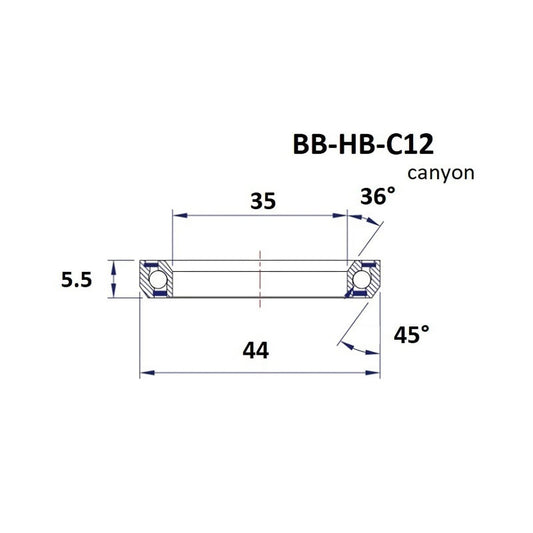 ZWARTE LAGER Canyon C12 36/45° Balhoofdset (35 x 44 x 5,5 mm)