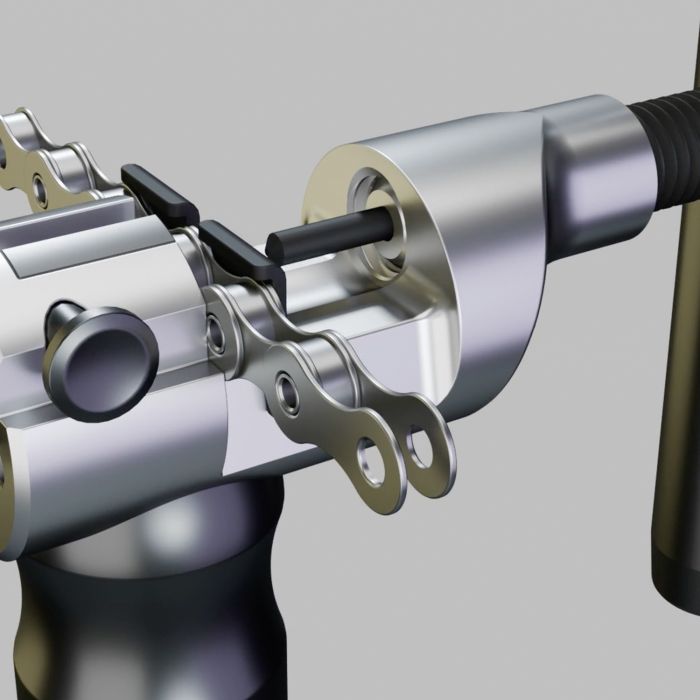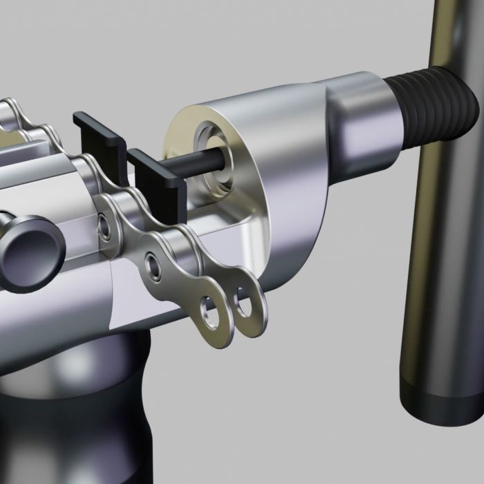Fixation de la chaîne : Par pression du pouce pour un alignement précis.
