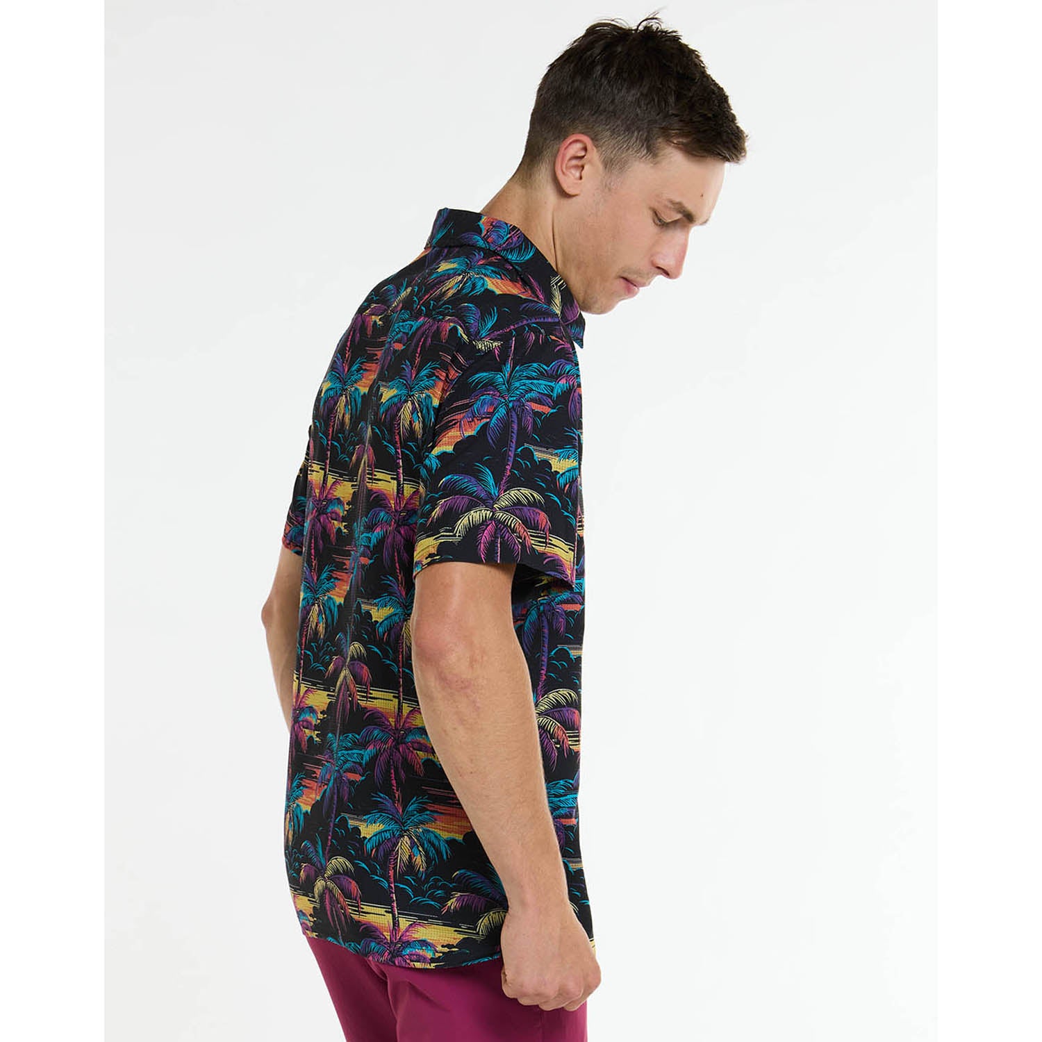 De lichtgewicht, ademende polyester/spandex stof zorgt voor een uitstekende vochtafvoer, zodat je zelfs op de warmste dagen droog en comfortabel blijft. De standaard relaxed fit biedt veel bewegingsvrijheid zonder afbreuk te doen aan de look.