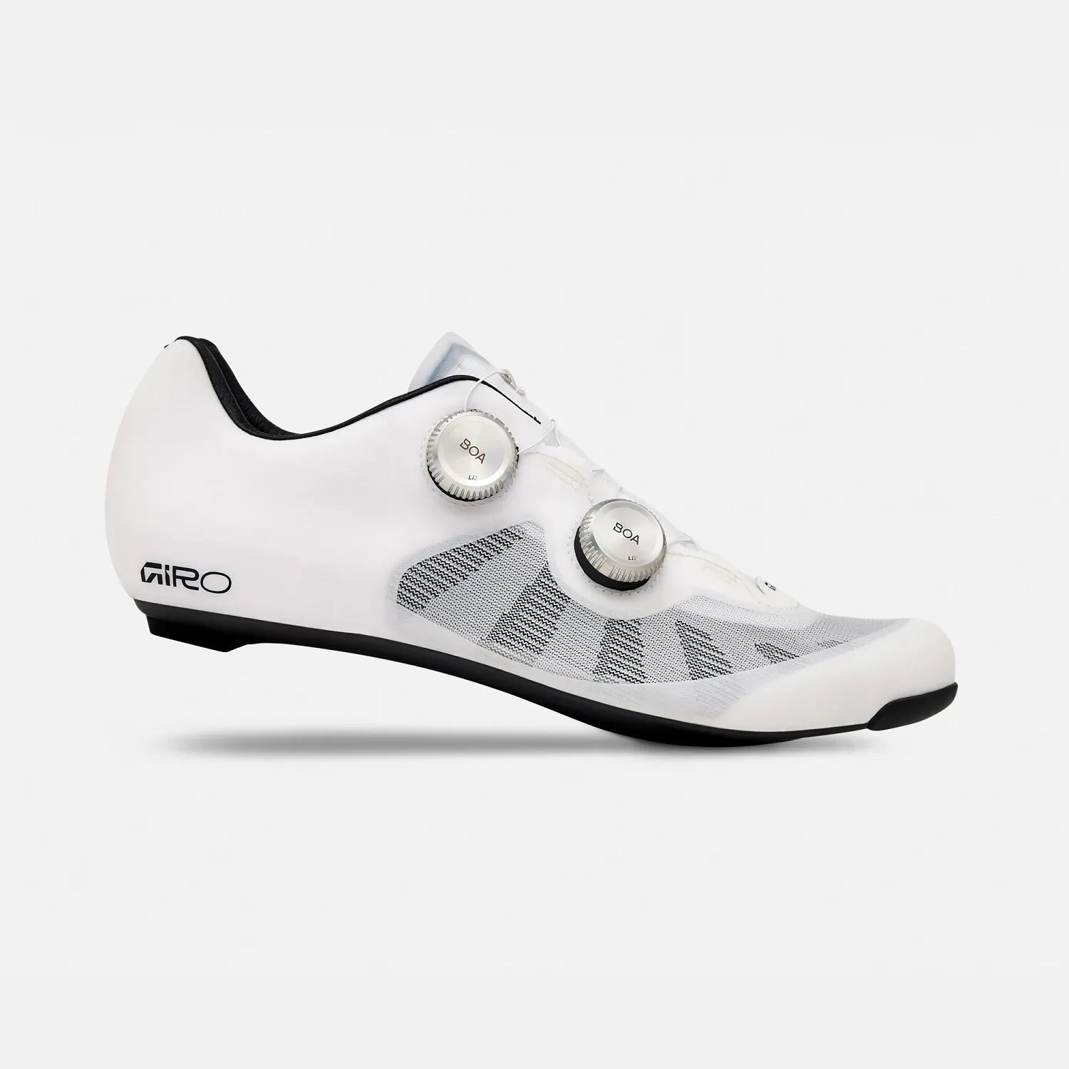 La semelle extérieure en fibre de carbone forgée unidirectionnelle assure une rigidité accrue de 20 Nm tout en maintenant un poids extrêmement bas d’environ 220 g par chaussure (taille 43), offrant une efficacité de transmission de puissance exceptionnelle. L’esthétique minimaliste typique de Giro se conjugue à des matériaux haut de gamme pour offrir une chaussure aussi performante que séduisante.