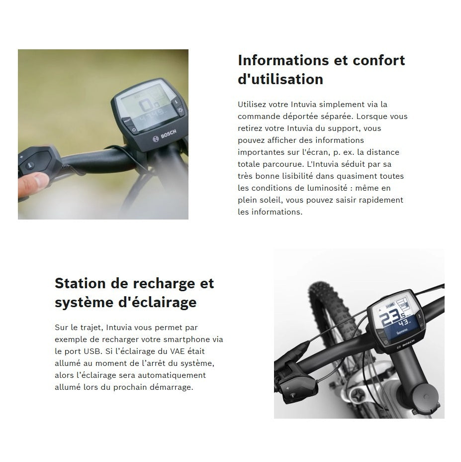 L'beeldscherm BOSCH INTUVIA grijs display is gemakkelijk af te lezen, ongeacht de lichtomstandigheden, en is gemakkelijk te bedienen dankzij de afstandsbediening. Je kunt dus beide handen aan het stuur houden, wat zorgt voor veiligheid en comfort tijdens je ritten.
