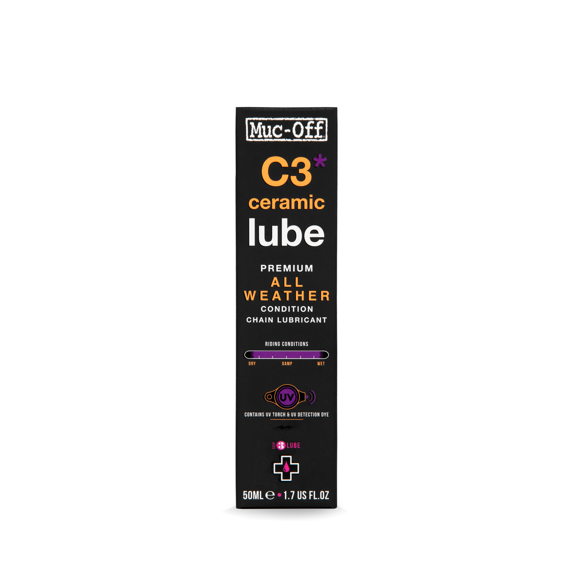 Grâce à un mélange d’additifs à pression extrême, le Lubrifiant Céramique Toutes Conditions MUC-OFF C3 ALL WEATHER CERAMIC réduit l’usure de la transmission et prolonge significativement la durée de vie de la chaîne, même lors des trajets les plus difficiles.