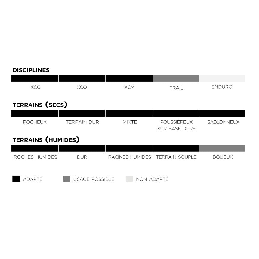 Profil M : Optimisé pour un grip maximal sur terrains techniques et plus meubles.