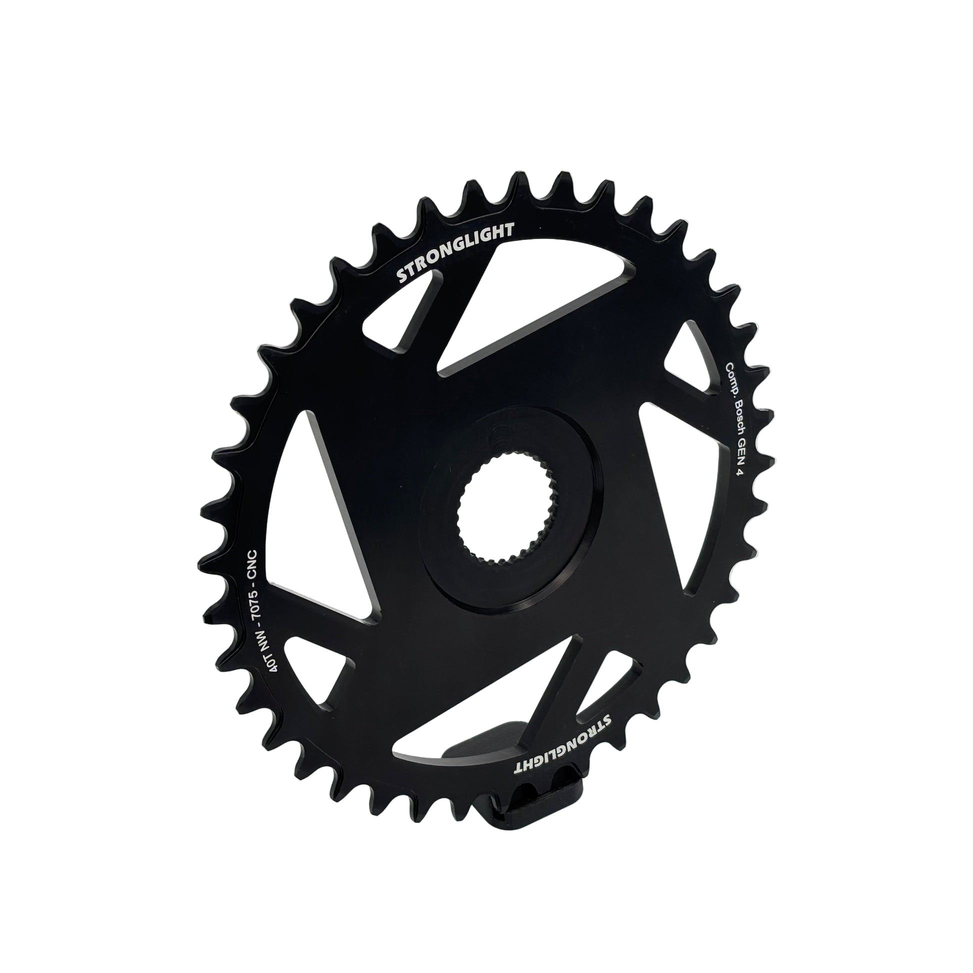 Le plateau Mono STRONGLIGHT BOSCH GEN4 12V Direct Mount ajouré combine légèreté et robustesse grâce à son aluminium 7075-T6. Conçu pour les moteurs BOSCH génération 4, il assure une transmission optimale et durable, idéale pour une pratique VTT exigeante.