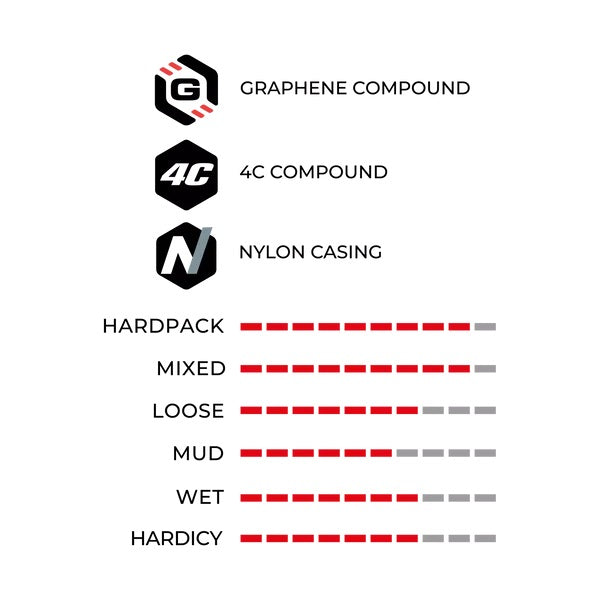 Dankzij de geavanceerde Graphene + Silica Formulaformulering combineert Mezcal grip, snelheid en duurzaamheid. Deze technologie biedt een optimale balans tussen controle op gladde oppervlakken, remprestaties en herstel. Vergeleken met zijn voorganger biedt deze band 20% meer snelheid, 8% meer grip, 44% meer weerstand tegen lekrijden en 9% meer comfort.
