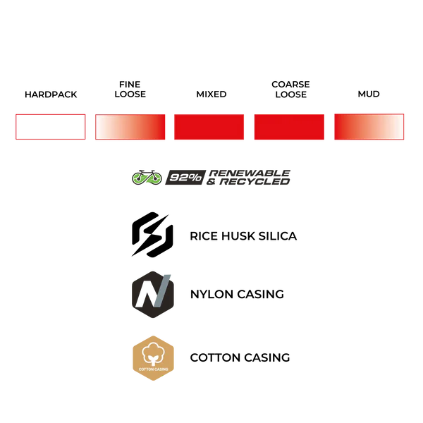 Plus qu’un pneu rapide, le Terreno PRO T60 est aussi un modèle de durabilité. Fabriqué avec 92 % de matériaux renouvelables et recyclés, il est 7 % plus rapide, 9 % plus adhérent et 34 % plus résistant aux crevaisons que la moyenne des pneus concurrents. Une conception récompensée au Taipei Cycle Show 2024, symbole de la nouvelle génération de pneus écologiques haute performance.