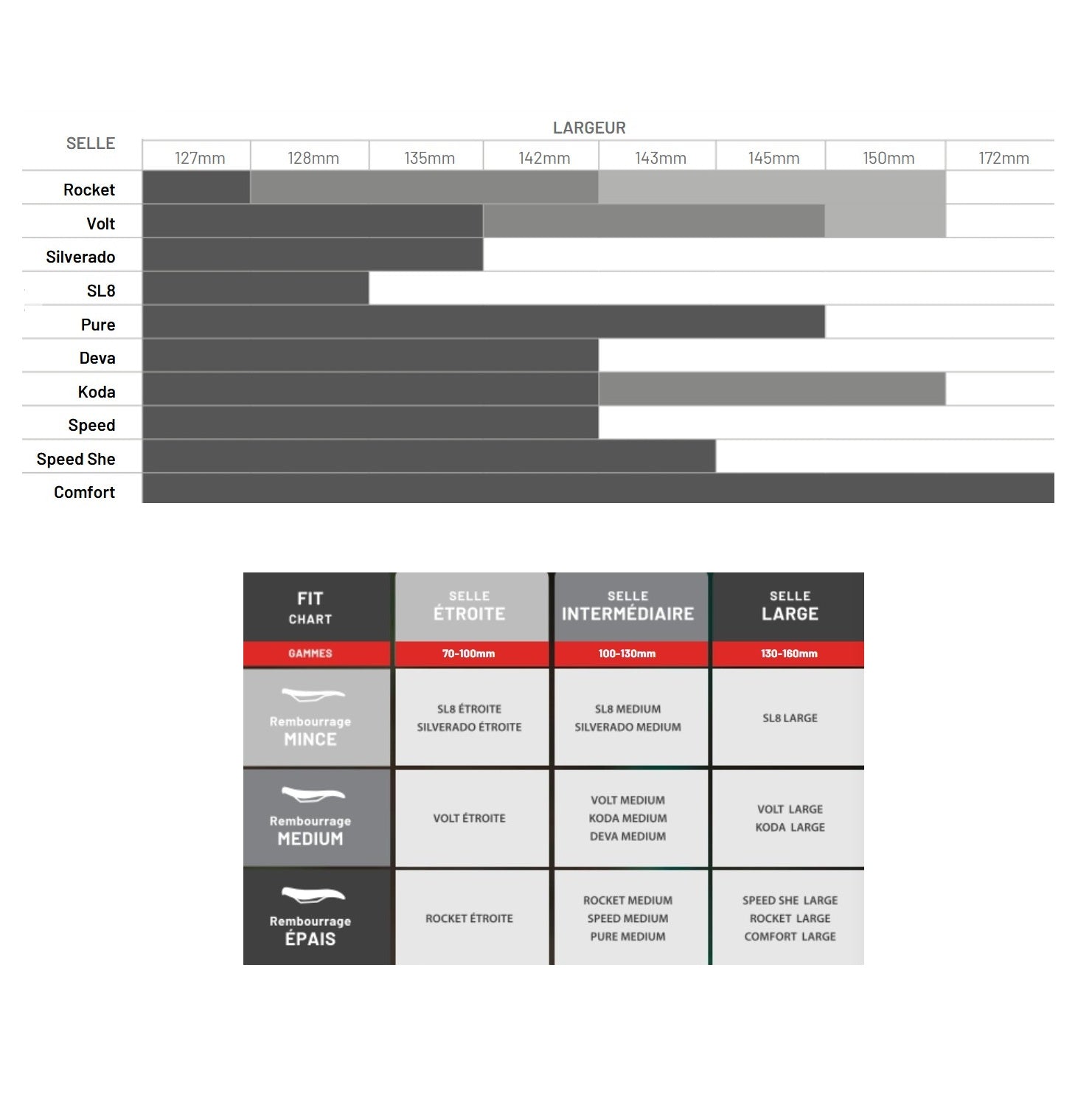 Breedte zadel : 145 mm